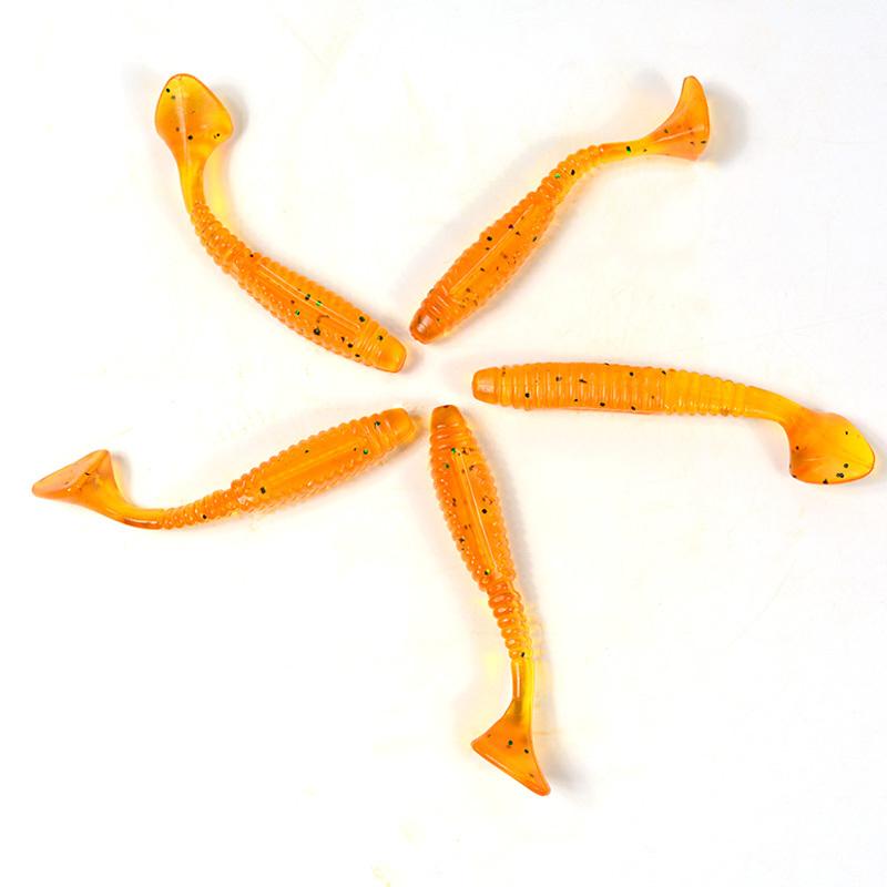 5Pcs/Bag 8cm 5.7g Silicone T Tail Brown Grub Worm Fishing Lure