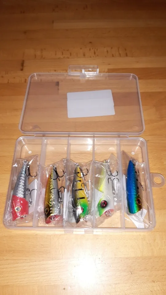 - Set Includes: 5 high-quality topwater minnow popper lures, perfectly packaged in a durable box.